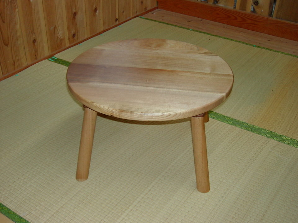 昔のちゃぶ台をイメージして作った丸い天板のお絵描きデスク。折り畳み足にも対応できます。(価格はお問い合わせください)